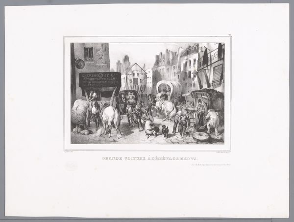 Editor: This is "Un marechal a Moret" by Jules-Jacques Veyrassat, and it depicts a farrier working on a horse in a village. I'm struck by how the artist captures the everyday labor in what seems like a rural setting. What do you see in this piece? Curator: The image offers insight into the socio-economic structures of 19th-century rural France, doesn't it? The farrier represents a crucial role in agricultural communities. Consider the relationship between humans and animals. How might we interpret the image in light of debates about labor, class, and the changing landscape of rural life during the Industrial Revolution? Editor: I hadn't thought about it in terms of the Industrial Revolution affecting rural life. That gives the scene a whole new layer of meaning. Curator: Exactly. It's not just a quaint scene; it speaks to broader societal shifts and the realities of work and dependency. Considering this context enriches our understanding of the artwork and its time.