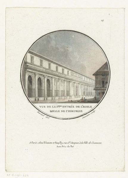 This print, made by L. Roger around the late 18th or early 19th century, depicts the Théâtre de l'Ambigu-Comique in Paris. The printmaking process involves a series of skilled techniques, combining artistry and craft. The print begins as an engraving, where lines are incised into a metal plate, likely copper. Ink is then applied to the plate and carefully wiped, leaving ink only in the engraved lines. Then, with considerable pressure, the image is transferred to paper. The addition of watercolor by hand, introduces an element of uniqueness to each print, softening the architectural lines of the theatre. The print also highlights social context: the theatre was a place of amusement for the rising middle classes, and this print would have helped to promote the theatre. Materials, making, and context all contribute to the print's meaning, and the way it challenges the divide between fine art and craft.
