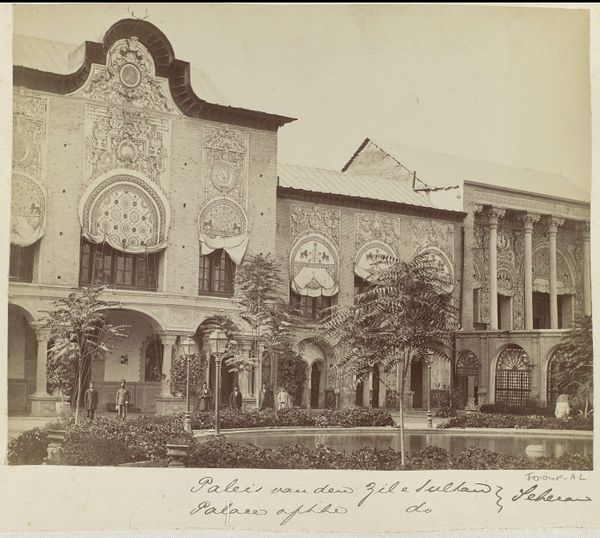 Editor: So, we're looking at "Exterieur van de Alai Darwaza bij het Qutb-complex, Delhi," a photograph by Samuel Bourne taken between 1863 and 1866. The detail is amazing! What stands out to you about this photograph? Curator: I'm struck by the context of its production. Think about the labor involved. Bourne, a British photographer, travels to India during the colonial period. He's using cumbersome photographic technology – glass plate negatives, a portable darkroom. The resulting image isn’t just a representation of the Alai Darwaza; it’s a document of colonial enterprise, capturing and consuming a specific vision of the East. Editor: So you're saying the photograph itself is a product of a specific system of power? Curator: Precisely. And the "Orientalist" style reinforces that. The aesthetic choices - the framing, the lighting, likely staged elements - were made to appeal to a Western audience and confirm their existing ideas about the ‘exotic’ East. It is consumed as information about this part of the world and it does the labor of enforcing specific beliefs. Look closely at the photograph itself; what materials would have been needed to build this magnificent structure? What labor would that entail? Editor: I never considered the photographer's role in perpetuating those narratives! All of that exquisite detail required so much physical work, both by the original artisans and Bourne in capturing it! Curator: The photograph itself becomes a commodity, traded and consumed back in Europe. What seems like a neutral depiction is loaded with the politics of representation. And who profits from it, and who toils? It really urges a reconsideration of who benefitted from such an image. Editor: Wow. I am looking at it with different eyes now. Curator: It reveals that photography itself is deeply enmeshed within a framework of materiality, labor, and economic consumption. Editor: That's fascinating. Thinking about photography less as a simple snapshot and more as a material product of colonial power shifts my entire perspective. Thanks for that insight!