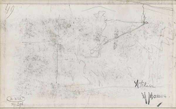 Curator: Right now, we're standing in front of Isaac Israels' work, "Annotatie." It's dated between 1875 and 1934, made with mixed media on paper—including ink, graphite, and watercolours. It's part of the Rijksmuseum collection. What’s your initial read of this piece? Editor: Honestly, it feels like a ghost story told on paper. Very faint, with shapes just emerging from the background like figures in a dream. The texture alone speaks volumes. Curator: Texture is key here. Israels wasn’t just aiming for a perfect likeness; he was capturing the fleeting essence of a subject. The layering of ink, graphite, and watercolor suggests he’s building up impressions, much like how we form memories – fragmented and layered over time. Editor: That's beautifully put. The scattered markings also hint at a script or notation layered behind the image. As if there's a story to uncover and multiple interpretations of the impression it leaves. Curator: Precisely! And that aligns with the title itself, "Annotatie," meaning "annotation". It's like a visual diary entry, a momentary glimpse caught and then inscribed. Maybe it's his response to the Dutch landscapes or daily encounters... Perhaps the piece encapsulates themes from Impressionism to Modernism, which can both be considered fitting given its stylistic appearance. Editor: I think you nailed it. The palimpsest nature evokes how modern minds filter new visual information while drawing upon their memories. Israels seems intent on communicating his subjects via a multi-layered reality rather than presenting the mere facade. What stays with you when you walk away? Curator: The fragility. It reminds us of the transient nature of life. And maybe, that even incomplete, almost ghostly impressions, can carry so much emotional weight. Editor: I agree. It echoes the Japanese aesthetic of Wabi-Sabi – celebrating beauty in imperfection, finding poetry in transience. Definitely more here than initially meets the eye.