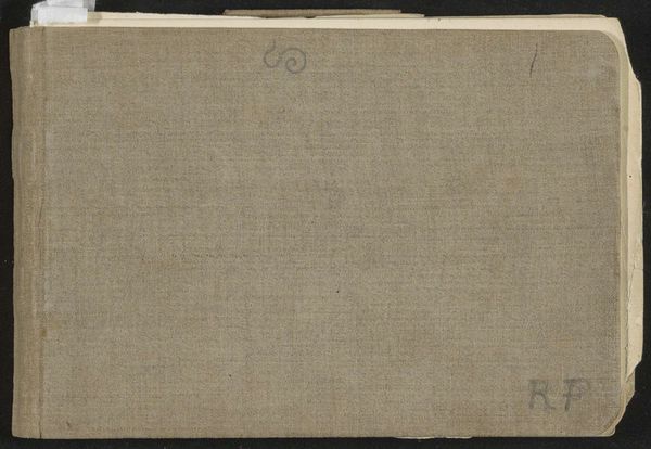 Curator: At first glance, this simply looks like the cover of a well-worn notebook. Editor: Well, you're not far off! What we're seeing is the cover of "Sketchbook with 28 Leaves" by Willem Witsen, dating from around 1893 to 1897, which is held here at the Rijksmuseum. Curator: The muted color, the almost distressed texture of the cover itself...it speaks volumes about the life of a working artist. I'm curious about the physical object itself, the paper, the binding. What kind of materials were used, and where did they come from? Was this a common type of sketchbook, easily available, or something more bespoke reflecting Witsen's status and networks? Editor: Those are excellent questions! Considering Witsen’s position within the art world, it's important to understand how sketchbooks like this one functioned within the institutional framework. The very act of sketching, and its place within art education and professional practice. Was it a private act, a public display, or a commodity intended for eventual sale or circulation amongst artistic circles? Curator: I'd argue it’s a complex interaction between those! Was the sketchbook meant for preparatory work or seen as artworks in themselves, a physical embodiment of creative labour? The history and availability of such materials surely played a role in his artistic choices. Were there cheaper alternatives and what implications might those limitations of artistic production had? Editor: Absolutely. The social circles in which he mixed – other artists, patrons – these connections shaped what he created, and how his art was ultimately perceived and received. Witsen was, of course, very active in Amsterdam's art scene. This sketchbook, in a way, connects to those broader narratives. It illustrates his integration with artistic and intellectual circles of his time. Curator: To consider that it likely travelled with him, witnessing moments of artistic insight, bearing traces of studio and outdoor environments... fascinating! The materials aren't just a means to an end; they are evidence of a specific socio-economic reality, the daily practice of a working artist. Editor: Indeed. Viewing the sketchbook not just as an art object but as an historical artifact adds layers of understanding to Witsen’s overall artistic output and standing. A document of social and aesthetic exchange during a transformative period in Dutch art. Curator: Thank you, that reframing brings such richness to the encounter with this artwork. Editor: My pleasure! I'll never look at a sketchbook the same way.