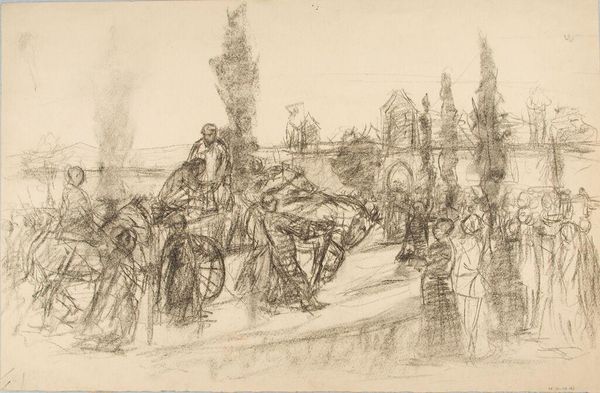 This print of sheep and lambs by Simon van den Berg was made using the process of etching, where acid bites into a metal plate to create an image. The controlled, yet unpredictable nature of this process is reflected in the dense cross-hatching, which gives form to the animals huddled in a stable. The materiality of this work directly relates to the process of its making. In etching, the artist protects certain areas of a metal plate with a waxy substance, then immerses the plate in acid. The longer the plate stays in the acid, the deeper and darker the lines become when inked and printed. Van den Berg’s skillful use of this technique lends depth and texture to the scene, highlighting the soft wool of the sheep and the rough-hewn timbers of the barn. While etching is considered a fine art practice, it's worth remembering that prints like these were often made for a broader audience, blurring the lines between high art and popular imagery. Looking at the materials, the making, and the context helps us understand the full meaning of this artwork.