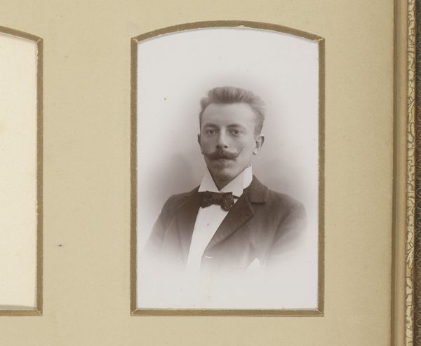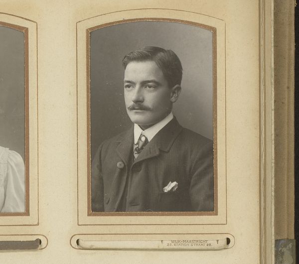 This is a portrait of a man with a mustache, created by Cornelius Antonius Gerardus Leijenaar sometime between the late 19th and early 20th centuries. Leijenaar, born in 1874, lived during a time when photography was becoming increasingly accessible, yet portraiture remained a significant marker of social status and identity. Here, the man's neatly groomed mustache, tailored suit, and poised demeanor reflect the values and expectations of bourgeois masculinity of the era. The photograph serves as a carefully constructed representation of self, intended to convey respectability, and perhaps, a certain level of social and economic standing. Consider the emotional weight of such an image, intended not just for personal memory, but also as a statement to the world. What narratives of identity and aspiration are embedded in this carefully crafted portrait? How does it speak to broader societal expectations of masculinity?