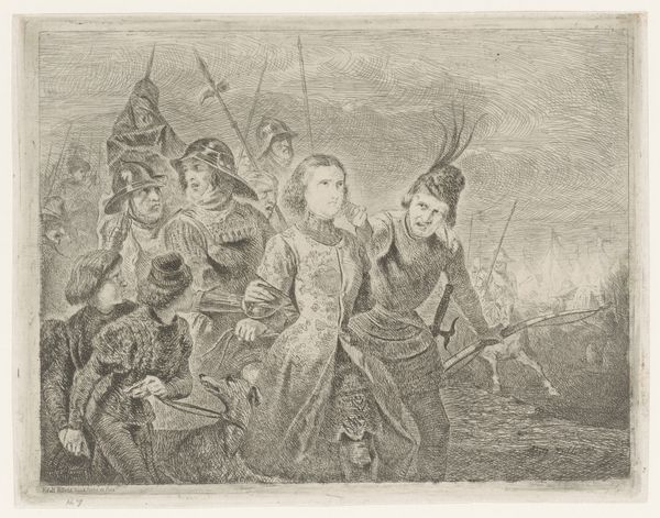 Editor: Here we have an engraving from 1862 by Johann Wilhelm Kaiser I after Rembrandt’s "The Night Watch," housed at the Rijksmuseum. What strikes me is the dynamic energy despite it being a still image. What is your take on it? Curator: It's fascinating how historical images, even reproductions like this engraving, accrue meaning over time. We're not just looking at Rembrandt's civic guard; we're seeing it filtered through 19th-century eyes and Kaiser’s interpretation. Consider the socio-political context in 1862; the Netherlands was forging a national identity. How might an image of civic unity, even one copied from a celebrated past, play into that? Editor: That makes a lot of sense! So, the artwork gains value not only from Rembrandt but also from how later generations viewed it? Curator: Precisely. This engraving allows the 'Night Watch' to circulate more widely, becoming a readily accessible symbol. Think about the role museums played then and continue to play. The Rijksmuseum was relatively new. What effect does exhibiting such an image have on public perception of Dutch history and artistic prowess? Editor: I never considered it that way. I was only focusing on the art and visual aspect. Curator: It's also a conversation about class and access. While the original painting was exclusive to Amsterdam, the engraving democratizes its image, albeit through a mediated form. Whose version of history is being promoted, and to whom? Editor: Wow, you’ve given me a lot to consider! This piece tells more than one story, and it isn’t only about the guards! Curator: Indeed. Artworks are rarely passive. They actively shape our understanding of the past and the present. It’s all intertwined: artistic vision, cultural forces, and institutional power.