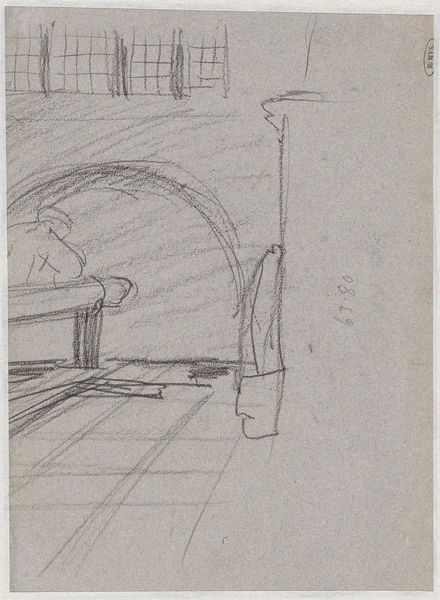 Editor: This is John Constable's "The Porch at East Bergholt Church, Suffolk," a pencil sketch. It feels very immediate, almost like a fleeting thought. What can you tell me about it? Curator: It's a fascinating glimpse into Constable's working method. Consider the *means* of production: pencil and paper, readily available materials. What does this suggest about the accessibility of art-making at the time? Editor: So, it's not just about the image, but also about who could afford to make art? Curator: Precisely. The sketch is an object tied to social and economic structures. It's a reminder that even the most seemingly simple artwork involves material conditions. Editor: That's a great point. I hadn't considered the economics of art materials before. Curator: Seeing art through the lens of material and process can reveal a lot about society and culture.