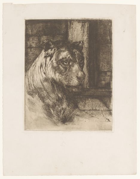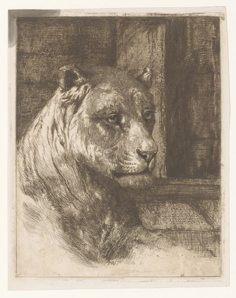 Editor: Here we have "Head of a Lioness," a pencil and graphite drawing by Bernard Willem Wierink, dating from 1866-1939. There's a delicate, almost fragile quality to it. What draws your eye, looking at it from your perspective? Curator: I'm immediately struck by the materials and the process. It’s a "pencil sketch," yet consider what goes into acquiring pencils, paper, and then honing the skill required for this realism. This wasn’t readily accessible to all, even in Wierink’s time. How does the accessibility of artistic materials shape who gets to create, and whose stories are told? Editor: That's an interesting point! I hadn't really thought about the material constraints. Curator: And consider the social context that allowed Wierink to dedicate his time to sketching a lioness. What structures are in place that let him have that luxury and how it’s intrinsically linked to labor and access, isn't it? What narratives of power and leisure does it hint at? Editor: So, you’re saying the very existence of this drawing speaks volumes about the society that produced it, far beyond just being a "realistic" sketch? Curator: Precisely! The lioness is presented without a defined background which can encourage reflections on art for art’s sake and further fuel our interpretation around what can be classified as art. Does the artist's choice of form as opposed to theme matter? It begs the question, who and what are deemed worthy of representation, and what does it say about us as a society when an artist prioritizes only the 'head' of this animal as his focus? Editor: I see. So, beyond just appreciating the aesthetic quality of the drawing, we should also think about the systems of labor and resources that made it possible and about artistic agency as a social class construct? Curator: Exactly. It prompts us to interrogate our assumptions about art and artistic expression as products of complex material conditions. What narratives are privileged through the selection, production, and consumption of art materials? Editor: This has completely changed how I look at something as seemingly simple as a pencil drawing! Thanks! Curator: It's about looking beyond the surface to the intricate web of social and material forces that give rise to art. Glad to share this perspective.