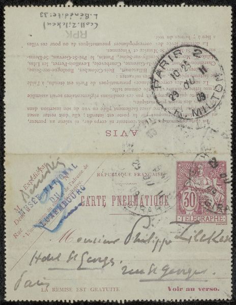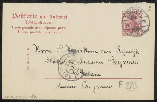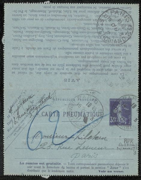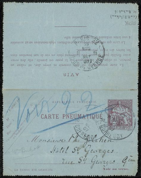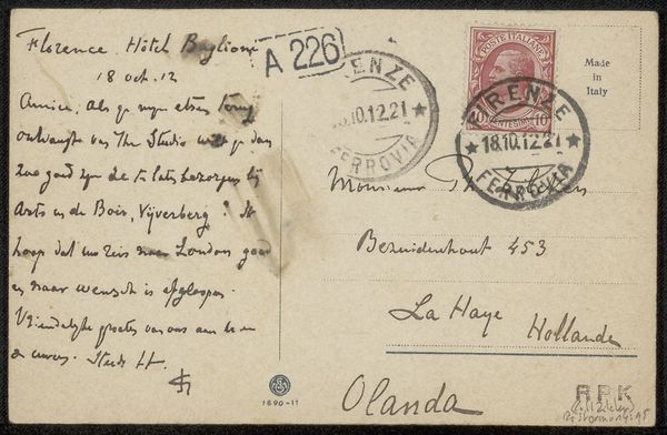 This unassuming postcard was created by Charles Destrée, and what strikes me is its layered density. It’s a little universe made of handwriting, stamps, and official postal markings. The ink seems to bleed slightly into the card, giving it a kind of fuzzy warmth. Look at the number “8” scrawled on the front; it’s like a little drawing, a doodle, asserting itself in the midst of all the official language. The stamps are like tiny paintings, each with its own graphic world, jostling for space. The overall effect reminds me that art isn’t just about grand statements, it can be found in the everyday. A postcard like this shows us how even the most mundane objects can be imbued with personality and feeling. It's as if the artist is whispering secrets amidst the noise of the postal system. Think of Cy Twombly's works on paper with their handwritten notations and scribbled marks. In both cases, art becomes a form of intimate communication, a fleeting message sent across time.