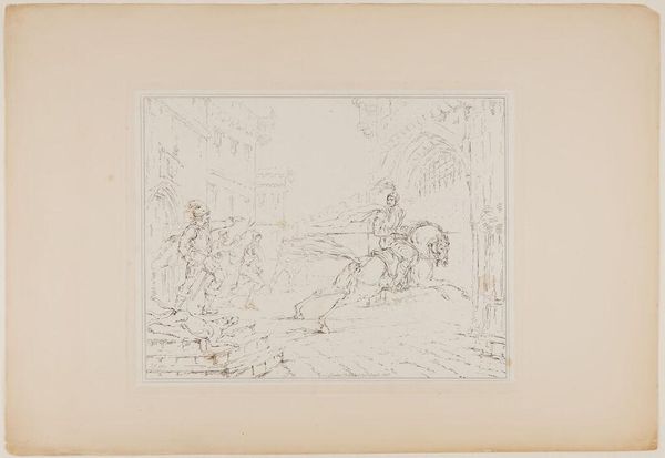 This is a design for a banner with the city virgin of Roermond, made by Pierre Joseph Hubert Cuypers using pencil on paper. The soft graphite lines create an ethereal and delicate composition, fitting the imagery of a city virgin. Cuypers was a key figure in the Gothic Revival movement, and his practice included architecture, furniture, and the decorative arts, all done in close collaboration with workshops and artisans. Here, the drawing suggests a design process, where the material of the sketch acts as a blueprint for a grander, more elaborate textile banner. The choice of pencil as a medium speaks to the artist's intent, using a readily available and versatile material to visualize and communicate his ideas. Consider the traditional skills employed to bring this banner to life, and the labor involved in translating Cuypers’ vision into a tangible object for the city of Roermond. This drawing is a reminder of the artistic process, and the relationship between design, craft, and community.