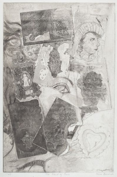 This is "Der Friseur", by Ernst Ludwig Kirchner, made probably around 1912, but honestly, dating prints can be a real headache. The whole thing looks scrubbed back, reworked, full of ghostly figures, a real mess! But I mean that in a good way. Look at the way the barber's hands are drawn, so sharp and angular, and then the way the face of the person getting the haircut is almost smudged away. There's a real tension between clarity and chaos here, something that always gets me going. The texture is really something. I can imagine Kirchner working the plate, wiping it back, adding more lines, creating this dense, layered surface. It's like he's not just depicting a scene, he's also showing us the process of how the image came to be. It reminds me a bit of Edvard Munch, that same feeling of anxiety and unease. But also, this idea of art as a conversation, where artists borrow and steal and transform each other's ideas. It's all one big, beautiful, messy conversation.