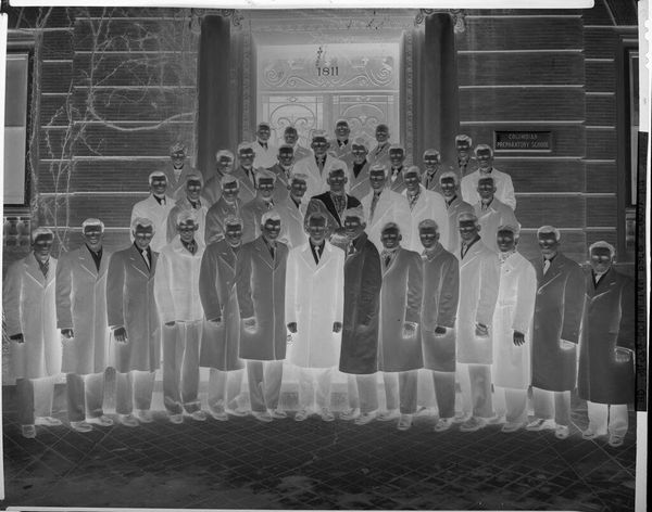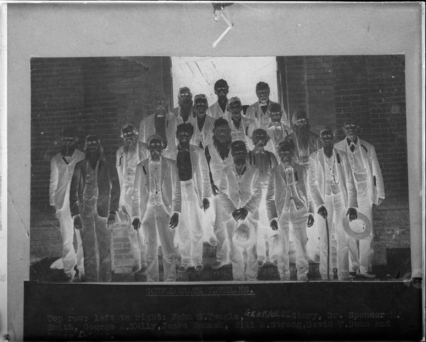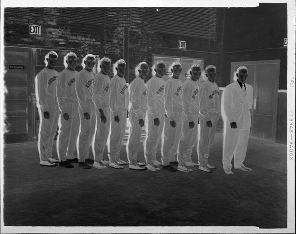 Editor: This photograph, "Untitled (class photo, Landon School for Boys)" by Harris & Ewing, shows a group of young men in suits. The negative effect gives it an unsettling, almost ghostly quality. What can you tell me about the context of this image? Curator: The image speaks volumes about power, privilege, and exclusion. Consider the historical context: what did it mean to be a young man at Landon School? What were the expectations, the possibilities, the limitations shaped by their class, race, and gender at that time? Editor: So, it's not just a picture of a class, but a reflection of a specific social structure? Curator: Precisely. We must examine the power dynamics at play. Who is included, and more importantly, who is excluded from this representation of success and belonging? What narratives are being reinforced, and whose stories are being silenced? Editor: That really changes how I see it. It's more than just a photo; it's a statement. Curator: Absolutely. And by critically engaging with these historical images, we can better understand the ongoing impact of these power structures today.