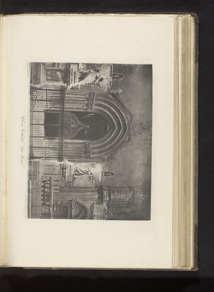 Editor: This image, titled "Ingangen van de Giralda toren en de doopkapel van de kathedraal van Sevilla," dating to before 1886, appears to be a print of a photograph, depicting two intricately detailed arched doorways. The contrast between light and shadow creates a striking geometric pattern, almost dizzying in its complexity. How do you approach analyzing this piece from a formal perspective? Curator: One must observe the photograph's inherent qualities, specifically the relationship between line, shape, and tone. Note how the photographer has meticulously captured the ornate details of the architecture. The geometry you mentioned isn't merely representational; it's a formal device. The interplay of circles and rectangles within the arches creates a visual rhythm. Do you perceive how this rhythm structures the entire composition? Editor: Yes, the arches create a symmetrical division, a balance that contains all the tiny chaotic carvings. Is there any structural significance to the photographic medium itself in representing architecture? Curator: Indeed. Photography, especially in the 19th century, provided a unique lens – both literally and figuratively – through which to examine architectural form. Unlike a painting, photography’s supposed indexicality lends a sense of objective truth. However, the photographer's choices – the angle, the lighting – inevitably shape our perception. The lack of color further directs attention to texture and form, doesn't it? Editor: It definitely makes me focus on the carved details and how light defines them. It’s interesting to think about how the photographic medium can reinforce or even challenge our understanding of architectural space. Curator: Precisely. By analyzing these formal elements, and reflecting on photography as medium and material, we come closer to an understanding of the image's aesthetic impact. This also reveals its unique contribution within the history of architectural representation. Editor: I see the architecture of the doorway, I see its history in stone. Thank you for shedding light on its compositional components and structural medium!