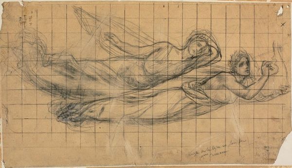 John Singleton Copley created this graphite on paper drawing as a study for his painting "The Siege of Gibraltar," a dramatic scene from the American Revolutionary War. The artist's hand is evident in the expressive lines that define the figures' anatomy and clothing. The medium allows for a high degree of detail, seen in the shading and musculature. The grid that underlies the sketch is important, revealing the system that Copley used to enlarge and transfer his composition. This reveals much about Copley’s engagement with both traditional and new approaches to painting, at a time when the status of artists was evolving in relation to the market. Copley was acutely aware of how his paintings would be received, and of the social and political implications of depicting such scenes. As such, the drawing represents not just a technical exercise, but an engagement with the very themes of conflict and heroism that would define his art.