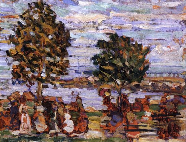 Maurice Prendergast made this lively painting, The Holiday, with oil on canvas. Look at the way he builds up the image with these tiny, joyful dabs of color. For Prendergast, painting isn't about copying reality; it's about creating a whole new way of seeing. Up close, you can almost feel the texture, the way the paint sits on the surface. It's not about smooth blending, but about the energy of each individual mark. See how he uses these marks to create the dresses and hats of the figures, so they almost shimmer with life. I love how this approach creates a sense of movement, like the scene is vibrating with excitement. It reminds me a little of Seurat, but with an even more playful, personal touch. Instead of trying to nail down a perfect image, Prendergast leaves room for our eyes, and minds, to wander. It's a celebration of the beauty and ambiguity of the world around us.