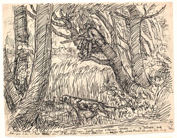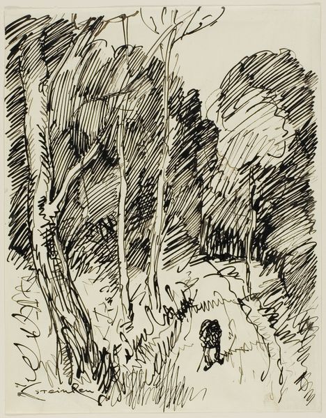 Editor: So, we're looking at Charles Nègre's "Le bûcheron," made sometime between 1857 and 1882. It’s a drawing, ink and photography, housed here at the Art Institute of Chicago. I'm struck by the sketchiness of it, the way the forest feels almost menacing, and then there’s this solitary figure of a woodcutter. How do you interpret this work in light of its historical moment? Curator: That sense of menace, I think, is key. Consider the mid-19th century: industrialization was rapidly transforming the French landscape and its rural labor force. Photography, also relatively new, offered a powerful way to document this changing world, to record both the grandeur of nature and the hardship of those who toiled within it. How might this image be seen as a political statement, then? Editor: Well, on one level it's realism, depicting the life of a woodcutter. But you're suggesting it's more than just a literal representation? Curator: Exactly. Nègre was deeply invested in the social realities of his time. Think about who controls the narrative. Before photography, how were rural laborers typically portrayed in art? Often idealized, right? Nègre’s image, with its raw, almost uncomfortable portrayal, shifts that dynamic. Is the woodcutter a hero, or a victim of circumstance? Editor: I see your point. The ambiguity challenges those traditional, romanticized views of rural life. The forest becomes less idyllic and more a site of struggle. I had not considered it this way. Curator: It prompts us to ask: Who has the power to represent whom, and to what end? Images, like this one, played a part in shaping public perception and influencing social discourse. Editor: That’s a powerful way to think about it. So it's not just about what the image shows, but also about the context and who gets to tell the story. I am truly getting a different point of view now. Thanks for making me think in a different way.