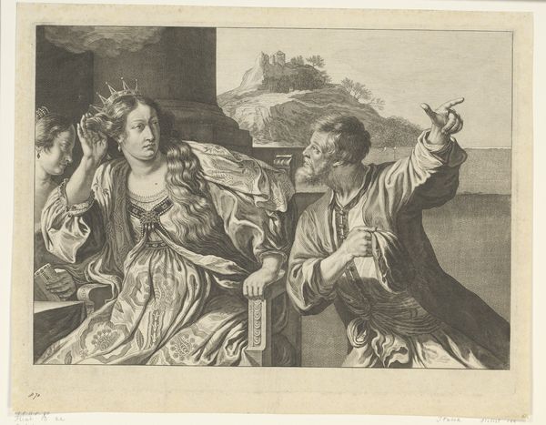 Lucas Vorsterman created this engraving, "Lot met zijn vrouw en dochters ontvluchten Sodom," using a printmaking technique that allowed for the wide distribution of images. Engraving involves meticulously incising lines into a metal plate, inking the plate, and then pressing it onto paper. The lines hold the ink, creating the image. Vorsterman's skill is evident in the detailed rendering of figures and textures, as well as the gradations of light and shade. This process, while demanding in terms of labor, allowed for the creation of multiples. The use of printmaking, and engraving in particular, reflects the increasing commodification of art during this time. It facilitated the dissemination of visual narratives to a broader audience, making art more accessible beyond elite circles. This engraving exemplifies the intersection of artistic skill, material processes, and the evolving social context of art production.