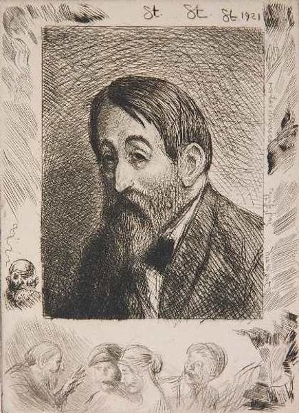 Editor: This is Magnus Enckell's "Portrait of Chamberlain Hjalmar Linder," from 1906, rendered in graphite, pencil, and charcoal. It's interesting how much contrast Enckell achieves using relatively simple materials. What draws your eye when you look at this work? Curator: It's the layering of materials that captures my attention. Look at how the varying pressures and techniques with graphite, pencil, and charcoal build form. Consider the labor involved in achieving this level of detail and realism. Enckell isn't just representing Linder; he's actively constructing him through the very act of drawing. It prompts a question: What did this meticulous, material-dependent process mean for Enckell, and for the societal perception of portraiture itself? Editor: I hadn't really considered the labor involved so consciously, but you’re right – each stroke is a deliberate act. Do you think the choice of humble materials influences how the portrait is viewed compared to, say, an oil painting? Curator: Absolutely. Oil paint carries connotations of wealth and permanence, traditionally linked to portraying the elite. The choice of graphite, charcoal, and pencil—materials more readily accessible—perhaps democratizes the process of portraiture, subtly questioning established hierarchies in art and society. Enckell almost levels the playing field by prioritizing skill and technique over inherently precious materials. Editor: So, it's not just about depicting Chamberlain Hjalmar Linder, but about making a statement through the art-making process? Curator: Precisely! It is about unpacking the materials and processes behind this seemingly straightforward portrait, the material production itself acts as an active participant in how we understand representation and social structures in early 20th-century Finland. Editor: That's fascinating! I will look at drawings in a whole new light from now on. Curator: That's the beauty of engaging with art in this way—materiality adds depth and allows you to decode how our values shape art-making itself.