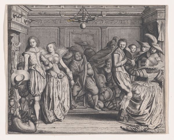 Dirck Hals, brother of the more famous Frans Hals, painted 'A Banquet' with oils on canvas in the first half of the 17th century. Oil paint is a versatile medium; pigments are bound in oil, allowing for realistic depictions, as well as symbolic displays of wealth and refinement. This painting captures a moment of leisure, but it's more than just a snapshot. It speaks to the economic prosperity of the Dutch Golden Age, where merchants and traders enjoyed unprecedented wealth. The rich colors of the fabrics, the fine details of the clothing, and the very act of gathering for a banquet – all signal a society that had the means to indulge in such luxuries. Consider the labor involved: from the cultivation of pigments for the paint, to the tailoring of the elaborate garments on display. This work reflects a complex network of production and consumption, with a rising merchant class keen to display their status and success. By focusing on such details, we can appreciate how even a seemingly simple genre painting offers insight into the social fabric of its time.