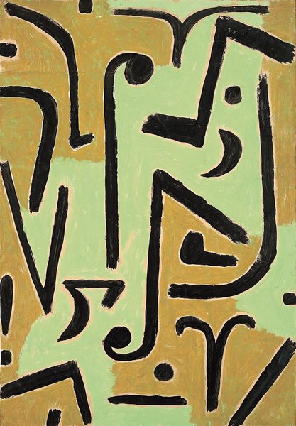 Curator: Right now, we are looking at "Ludo #2," created by Keith Haring in 1985. Haring used acrylic paint for this work, crafting a really dynamic and instantly recognizable piece. What jumps out to you? Editor: It feels celebratory! The bold outlines and bright colors give it such an optimistic, almost playful, vibe. The figure itself is so simplified yet expressive, there’s an undeniable energy radiating from it. Curator: Absolutely, Haring’s work is all about democratizing art, making it accessible. Consider how he used readily available materials – acrylic paint and paper. No precious materials, no ivory towers. Editor: That accessibility is key to his impact. Haring blurred the lines between fine art and street culture, right? Think about where his art was seen—subway stations, public walls—it was meant for everyone, and he certainly embraced collaborations and mass production. Curator: Precisely. The streamlined production facilitated his artistic intervention within public spaces and expanded his audience far beyond the gallery visitor. You also can't forget that pop art lineage with its bright hues and commercial influence. Editor: And in terms of Haring’s impact on visual culture, consider the political and social context, particularly around AIDS. His work was incredibly effective in raising awareness, promoting safer sex, and, sadly, he became a face for the struggle. His symbols entered the popular imagination so strongly that they also opened dialogues around critical issues that weren’t necessarily obvious at first. Curator: The social critique became ingrained into how audiences looked at art. The surface simplicity invited entry, then deeper examination and understanding. It shows that even simple, materially basic creations can catalyze major shifts in perception and change public attitude. Editor: Thinking about how it all comes together – the medium, the context, and Haring’s sheer vision—it is hard not to be impressed. It's a powerful testament to the fact that art's strength lies in its capacity to influence and involve. Curator: Yes, “Ludo #2”, much like the best examples of his accessible work, presents us with the perfect equation of materiality, public gesture, and message.
