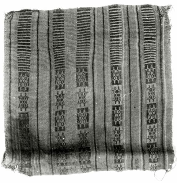 This woven tablecover of undyed linen was made by Jane Simonton Chapman, born in 1794. Without a specific date we can only contextualize this piece by knowing that Chapman lived through a period of immense transformation in American industry and gender roles. The labor of women was central to the production of textiles in the home. Weaving, often relegated to the domestic sphere, was simultaneously a creative outlet and an economic necessity. Tablecovers such as this one were physical manifestations of a woman's skill and industry, displayed in the home as a symbol of domestic virtue. Despite its utilitarian purpose, the geometric patterns woven into the fabric reveal a sense of artistry and personal expression. The creation of such textiles provided women an opportunity to contribute to the household economy, while also asserting their identities through craft. This piece allows us to consider the complex interplay between labor, gender, and creativity in the context of 19th-century America.