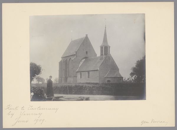 This gelatin silver print shows us the Sint-Dionysiuskerk in Schinnen. The sepia tone gives it a dreamy, almost ghostly quality. The focus is so sharp, every detail of the stone and slate jumps out. The texture is amazing. You can almost feel the rough surface of the church walls. Look closely at how the light catches the edges of the building. See how the photographer, Monumentenzorg, used light and shadow to create depth, even though it's a flat, two-dimensional image. The way the church dominates the landscape reminds me a little of those early modernist works. But unlike some of those paintings, this image isn't trying to make a statement. It's just a straightforward look at a place. And maybe that's the beauty of it. It invites us to slow down and really see. To appreciate the quiet dignity of this old church, standing there for who knows how long. In a way, that is the conversation, between presence and absence, solid and ghost. It is for us to decide what we think.