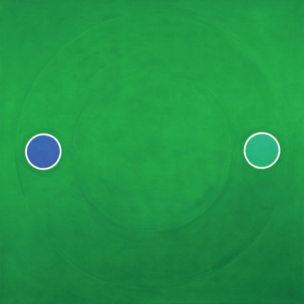 Yves Gaucher painted this work called "Danse carrée: Once Upon a Square" with what seems to be acrylic. There’s a real feeling of the hand at work here, despite its hard-edged appearance. It's all about flatness, and this red colour is very particular. Not quite fire engine, more like a faded brick you might see on an old building. The little marks break up the flat surface, making it fizz with potential energy. I love the pastel-coloured dashes and squares scattered around; they feel quite playful and intimate. It feels to me as though the artist is taking the modernist grid and turning it on its side a bit, like a minimalist Sol Lewitt with a bit of a wink. I'm interested in the title and that idea of dance, a set of rules that allow for improvisations and conversations between the dancers. Maybe Gaucher is having a conversation with those minimalist ideas in his own way. Art is just one long conversation anyway, isn't it?