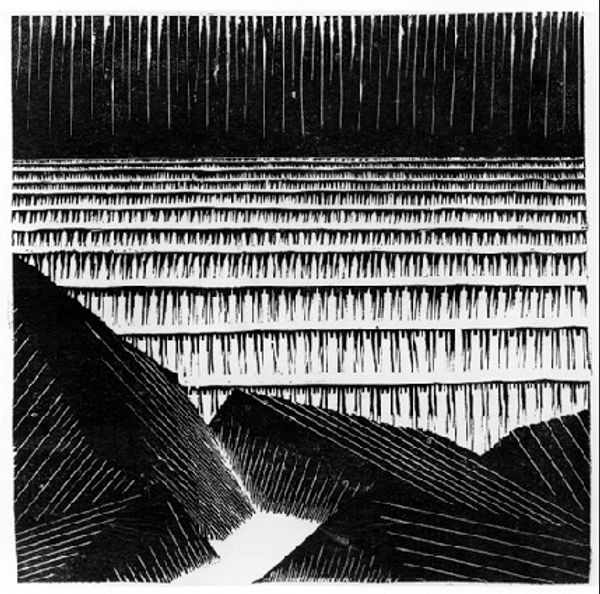 This is ‘Tree’ by M.C. Escher, made using a woodcut print. Look at Escher’s process. You can imagine his hand moving across the wood, carving out these lines, each cut a decision. The thing that strikes me is the stark contrast, the black and white, and how he creates texture within that limitation. Notice the horizontal lines in the background, like water, and then the vertical lines that make up the rock. Look at the way he uses these lines to create form, to give shape to the tree and the rock. It’s almost architectural, like he’s building these objects out of marks. The tree itself, with its hanging branches, feels like a melancholic gesture, a kind of slow, drooping movement. It reminds me of the precision and the almost obsessive detail you see in the work of someone like Dürer. But Escher is taking that precision and turning it towards something more playful, something more about perception and the tricks of the eye. It's not just about what you see, but how you see it.