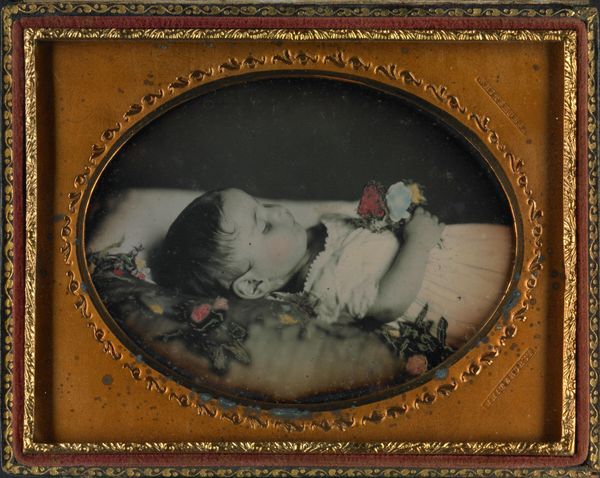 Editor: This is an albumen print from around 1860, called "Portrait of a Child." What immediately strikes me is its eerie quality, mostly due to the stuffed bear in the background. It feels posed and unsettling. How do you interpret this work? Curator: That eerie feeling you're picking up on is crucial. On one level, the image reflects Romanticism's obsession with childhood innocence and the sublime, symbolized by the wildness of the bear. But, there's a darker reading here, too. Photography in this era was still relatively new and expensive, so these portraits became highly staged events, constructing an identity under specific gendered, racialized, and class expectations. Editor: I hadn't considered that angle. It’s interesting to think of the staging itself as part of the meaning. Curator: Exactly! Who decided this tableau was appropriate, and what ideas about vulnerability or protection were they trying to convey? Look at how the child isn't smiling, or even necessarily comfortable. What anxieties might be present in constructing these highly sentimental photographs? Consider the way photography became an integral tool of colonialism during this period; it reinforces power dynamics while seemingly 'innocently' portraying them. Editor: It's a strange kind of power dynamic between the viewer, the child, and...the bear? I hadn't thought about the colonial connections. It is fascinating to view this through such an intersectional lens. Curator: It really emphasizes the layers of representation involved, doesn't it? Editor: Absolutely. This work seems like an iceberg, so much more to uncover. Curator: Indeed. It makes one think about representation and control that linger beneath the surface of even the most seemingly innocent image.