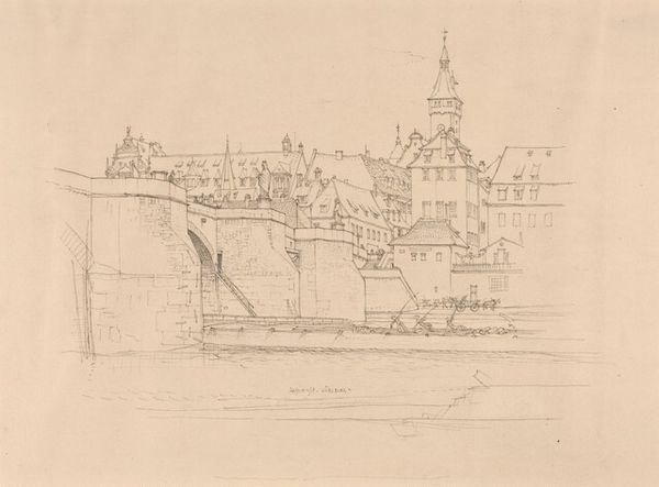 Editor: So this is Albrecht Durer's "The town hall in Aachen" from 1520, a pencil drawing. It almost feels like a ghostly apparition of the building, there's such a lightness of touch. What symbols do you notice in it, standing as it does in this historical space? Curator: The town hall itself functions as a potent symbol, doesn't it? A nexus of civic power and communal identity. Durer’s choice to capture it reflects a cultural moment. The rise of the merchant class and burgeoning civic pride after the Middle Ages. He memorializes a seat of power and hints at the town's wealth. Editor: Wealth definitely shows in the geometric facade! Were there any meanings attached to building designs during that time? Curator: Absolutely. Gothic architecture, with its verticality and light, carried symbolic weight related to divinity and aspiration. Look at the pencil detail on those geometric forms! Do you see those ascending towers and intricate details as echoing earlier spiritual ascensions? Consider the window numbers and symmetry? Durer uses geometry as a symbol of control and intellect, which may mirror the growing importance of secular reasoning. Editor: That's fascinating! It is almost like this northern drawing stands as a counterpoint to a religious building like a church. Curator: Precisely. Now, what emotional resonance do you pick up from the starkness? Is it reverence or civic duty that motivates Durer here? Is there room for both? Editor: I can see both. Looking closely now, that simple pencil sketch speaks of lasting social changes that are echoed today! Thank you for pointing it out! Curator: My pleasure, it's often through these symbolic threads we connect with our history.