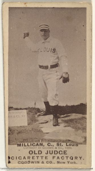 This photographic print of James "Jim" Devlin, pitcher for the St. Louis Browns, circa 1886, emerges from the "Old Judge" series, created to promote Old Judge Cigarettes. Note the gesture of Devlin's extended arm, a hand open in what appears to be an expression of appeal or perhaps direction. In antiquity, this open-handed gesture appears in depictions of orators and leaders, a symbol of guidance. Consider the Roman emperors with their outstretched hands. The act transcends mere physical posture, tapping into the collective memory of leadership, decision-making, and an appeal to a higher order or the audience at hand. This gesture, laden with historical weight, resurfaces here, adapted to the modern arena of baseball. It may not consciously recall the Roman forum, but subconsciously, it echoes the power and responsibility of the pitcher's role on the field. The image is a fascinating example of how symbolic gestures endure, adapting and reappearing across different eras.