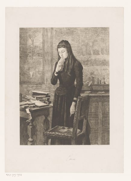 Editor: This is "Portrait of Neeltje Willemsdr. Zuytbrouck Reading" by Georg Friedrich Schmidt, created in 1774 using engraving. The soft lighting gives it a very contemplative, almost melancholic feel. What do you see in this print? Curator: Observe the density of the engraving marks; they create tonality and shape form. Consider how Schmidt uses the hatching and cross-hatching to define the subject's face, lending a softness to the portrait. How do these intricate techniques affect the viewer's perception of texture? Editor: It makes everything look so tangible. Like I could reach out and feel the fabric. How do you think the artist is able to make a print look so detailed and life-like? Curator: Consider the use of light and shadow, a key element borrowed from Baroque painting. Schmidt skillfully uses light to sculpt the forms and guide the eye. Do you see how the light catches the pages of the book, contrasting with the deeper shadows in the background? This tension shapes how we perceive the figure in the pictorial space. Editor: That contrast really does draw you into the central figure and her reading. I was so focused on her, I almost missed those details! Curator: Note, too, how the textures and composition provide the image's affect. Editor: I hadn’t considered how integral the surface and depth of field were in building the meaning! Curator: Close observation invites more consideration. This Baroque-styled portrait challenges our assumptions about engraving, moving beyond a mere copy to a potent construction of form and surface.