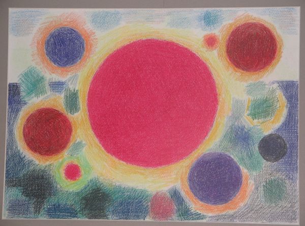This piece, simply titled Composition, was made with coloured pencil by Hryhorii Havrylenko. He has built up the image with thousands of tiny strokes, a real labour of love. Looking closely at the surface of this drawing, you can see a kind of shimmering effect, created by the layering of colours. The overall impression is of floating forms, like looking through a slightly fogged window. The colours are muted, almost pastel-like, but then you have these pops of crimson that really draw your eye. There's a circular form right in the middle, and it feels like the anchor for the whole thing. It reminds me of the work of Agnes Martin, particularly her use of subtle colour and geometric forms to create a sense of calm and balance. I love the way that Havrylenko embraces ambiguity here, offering us a space to wander and wonder.