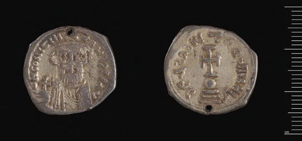 Editor: Here we have a Hexagram of Constans II. The silver is worn smooth, almost like a worry stone. What stories do you think it could tell? Curator: Ah, the jingle of ancient pockets! This little coin whispers of Constantinople, a city brimming with intrigue. Can you imagine the hands it passed through, each with its own tale of love, loss, or perhaps a simple loaf of bread? Editor: That is a fantastic way of putting it. How does its history impact your impression? Curator: Well, it brings it all to life. We aren't merely looking at metal. The coin becomes a vessel of human experience, worn down by time, and yet still resonating with stories. I almost feel a connection to that distant past, don’t you? Editor: Absolutely! I never thought of it like that!