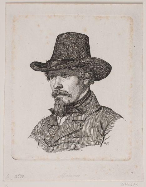 This small engraving portrays Marinus Adrianus Koekkoek, a member of a prolific family of Dutch painters, and was made by an anonymous artist at an unknown date. The image is interesting for what it tells us about the culture of artistic representation. Engravings like this one served a vital function. They acted as a form of branding, helping to disseminate an artist’s image and reputation to a broader public. The sitter's clothing and hairstyle, including his beret, denote him as an artist of some standing. It would be interesting to know where such images were circulated, what publications they accompanied, and what the public perception of artists was at the time. While the engraving is small and seemingly simple, it opens up many questions about the social and institutional history of art. Accessing period publications and exhibition records would shed light on the role this image played in shaping Koekkoek's career and the broader art world of his time.