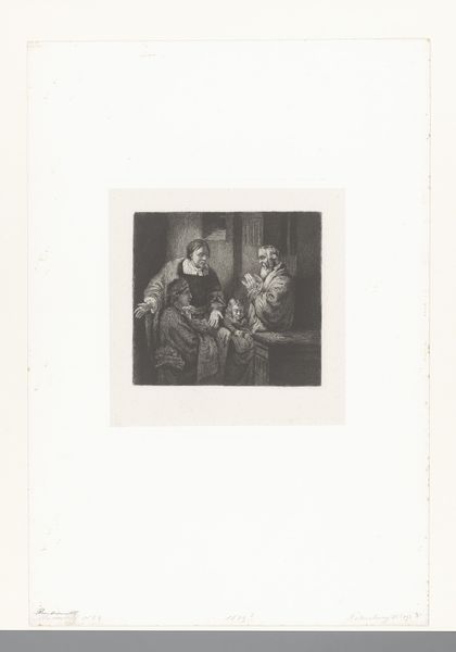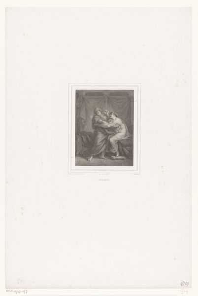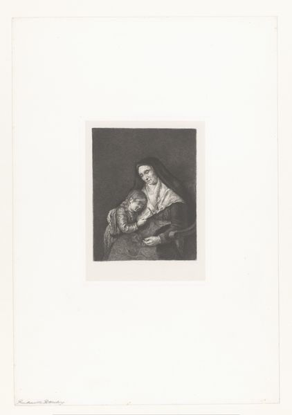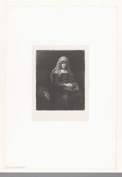 Editor: This graphite drawing, titled "Young Woman with Earrings," by Nikolay Semyonovich Mosolov, has a delicate, almost dreamlike quality. The way the artist has rendered the light feels so intimate, as if we're peering into a private moment. What do you make of this work? Curator: Oh, I love that description – dreamlike is perfect! It's like stumbling upon a forgotten memory, isn't it? The dark background contrasting with her softly illuminated face immediately pulls you in. To me, the focus isn't just on her beauty, but also on a profound sense of interiority. Look how her hand is raised to her ear... Do you think she's listening to something, or perhaps just lost in thought? Editor: I hadn't considered that, but you're right! There’s definitely a sense of contemplation. Is that something typical of portraits from this period? Curator: Well, portraiture, especially drawings, had shifted away from just documenting outward appearances. Artists were increasingly interested in capturing something deeper, the subject's inner world. And this piece beautifully exemplifies that shift, don't you think? Editor: Absolutely. It's much more evocative now that I look at it from that perspective. It feels like the drawing is whispering secrets about her thoughts, the "sound" of which she might be listening to… almost synesthetic! Curator: Haha! That's a beautiful interpretation! And it highlights something essential, how art can evoke so many personal connections. Maybe, she reminds us to tune into our own internal dialogue, or our past inner voices we might remember at times... I find myself doing it quite a lot! Editor: Definitely! I love that… Thank you, I learned a lot today!