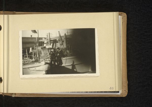 These photographs, of the SS. Statendam, Hofdijk, and Station D.P, are arranged on a page of an album by an anonymous hand. The monochrome images suggest a world viewed through a lens of memory and nostalgia, a process of piecing together moments in time. Each photograph offers a glimpse into a different facet of life. The surface of the album page becomes a canvas for arranging these images, creating a new narrative through their juxtaposition. I'm drawn to the way the photographs are slightly tilted, as though in motion. The candid quality of the images, with their imperfect angles and grainy textures, brings to mind the work of artists like Gerhard Richter, who embrace chance and imperfection as integral parts of their process. Like Richter, the creator of this album seems less concerned with capturing perfect representations. Instead, they appear to be interested in the raw, unpolished reality of experience.