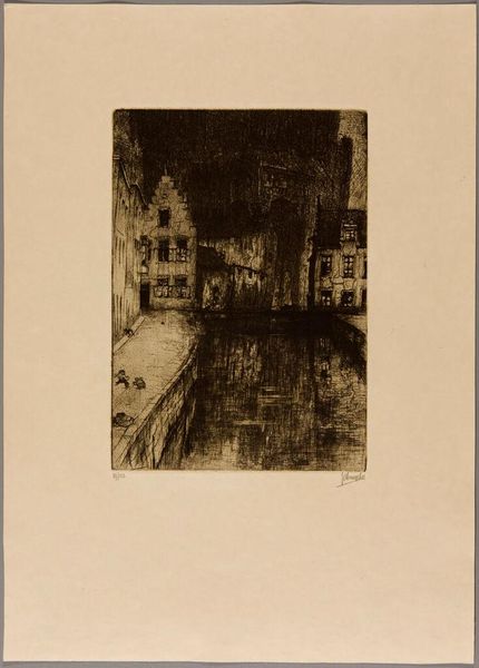 Editor: This is Maxime Lalanne's "The Arts Bridge and the Institute," and I find the night scene quite captivating. The dome in the background stands out against the sky. What draws your eye when you look at this print? Curator: The bridge itself serves as a potent symbol, doesn’t it? Bridges are often depicted as liminal spaces, thresholds between worlds. Consider the solitary figure crossing. What journey, literal or metaphorical, might they be undertaking? Editor: That's a lovely point. It’s true; it makes me think of the journey to knowledge, perhaps. Curator: Yes, the symbolic weight of the image is considerable, and it is interesting to consider how the Institute is cast in the light of knowledge. It's a compelling snapshot of a moment, heavy with the symbolism of progress and passage. Editor: I agree, thank you for that illuminating perspective!
