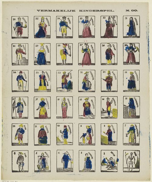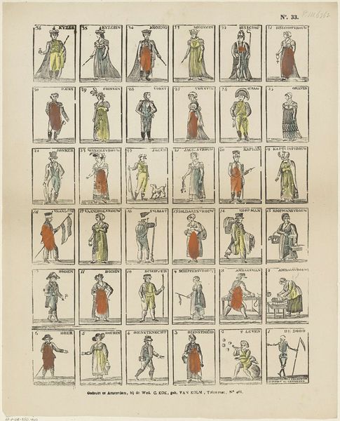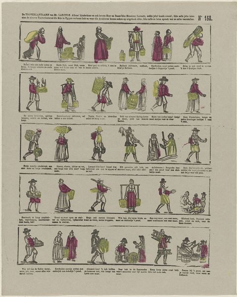 This is "Blad met dertig karikaturen van joodse mannen en vrouwen" by Johann Michael Voltz. It is an undated print featuring thirty caricatures of Jewish men and women. This artwork emerged during a period of complex social and political change in Europe. Enlightenment ideals were spreading, yet deeply entrenched prejudices persisted. Voltz's caricatures reflect the prevalent antisemitism of the time, portraying Jewish individuals through stereotypes and distortions. These images perpetuate harmful ideas about Jewish identity, reinforcing social exclusion and discrimination. Each figure is labeled with a name, implying an attempt to represent individual identities. However, the uniformity of the caricatured features flattens individual differences, reducing complex human beings to simplistic, prejudiced representations. It’s a stark reminder of how visual culture can be used to dehumanize and marginalize entire groups of people, and stands as a historical testament to the dangers of unchecked prejudice.