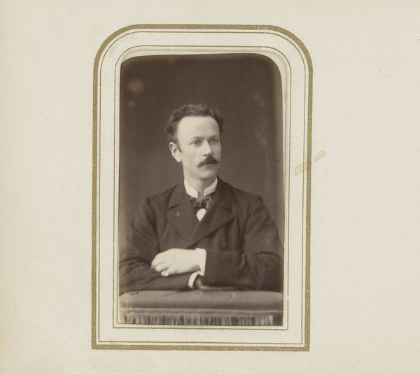 Curator: It always amazes me to look back at daguerreotypes, snapshots from so long ago. Here we have one of an unknown man by Boute-Dooreman, dating from 1894. Editor: Sepia dreams, that’s my first thought. It’s like stepping into a silent film, the kind where you know something terribly romantic or melancholy is about to happen. Curator: Ah, but beyond the feeling, look at the composition. Notice how the artist uses light to draw your eye directly to his face. The sharpness of his features, set against the softer, slightly blurred background creates depth and presence. Editor: The clothes, too, speak volumes, don't they? The dark suit, that impeccably tied tie... it all screams middle class respectability. You can almost smell the faint whiff of mothballs and pipe tobacco just by looking at it. Curator: Photography in that era wasn't just about documentation; it was about constructing an image, both literally and figuratively. Consider the slight upturn of the man's lip, or the deliberate grooming of the hair. Are these conscious attempts to project confidence? What about his stare? He seems rather intense, yet subdued. Editor: I bet he practiced that look in the mirror. But seriously, there's something deeply vulnerable here as well, perhaps stemming from knowing he's participating in this somewhat surreal, new technology. It’s more than just capturing an image, isn’t it? It’s freezing a moment, confronting mortality. He won't look this age forever; nobody does. Curator: Exactly! That awareness of time and impermanence enriches our viewing. Boute-Dooreman really understood how to wring maximum impact from minimal tools. Editor: Agreed. A powerful meditation, really, on time, memory, and the quiet dignity of ordinary lives. This man lived, loved, maybe failed and succeeded in ways we'll never know, but in that image he briefly returns to life.