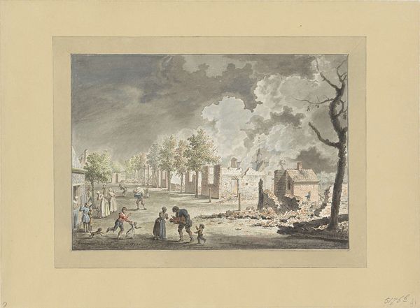 Gerard Overman made this print of the fire at the Nieuwe Lutherse Kerk in Amsterdam using etching and aquatint. These printmaking techniques, widely used in the 19th century, allowed for the reproduction of images on paper, making them accessible to a broad audience. The material qualities of the print—the texture of the paper, the delicate lines of the etching, and the soft gradations of tone achieved through aquatint—contribute to its documentary feel. Note how the print captures the dramatic scene with a range of tones, from the vibrant reds and oranges of the flames to the somber grays of the smoke-filled sky. Prints like these were often made in multiples, serving as a form of visual journalism. They could be rapidly produced and distributed, reflecting the increasing industrialization of image-making and its role in shaping public perception. The labor involved in creating such prints speaks to the intersection of artistic skill and commercial enterprise. We can appreciate Overman’s work as both a historical record and a product of its time, blurring the lines between art, craft, and mass production.