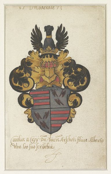 This alliance coat-of-arms was made by Pieter Jansz, sometime in the 17th century, using watercolor and ink on paper. It's a relatively humble set of materials, especially when you consider what the image represents: a union between two powerful families of the Dutch Golden Age. The artist has carefully rendered the heraldic elements, making sure to show the textures of the plumes and the details of the torches held by the figure at the top. It’s a handcrafted object that reflects a society in which status was rigidly structured, and jealously guarded. In that light, even the choice of humble materials takes on significance. Perhaps the families were seeking to project an image of modesty, or simply reflecting the values of a mercantile society where appearances could be deceiving. Whatever the case, Jansz’s artwork reminds us that even seemingly straightforward images can be rich with social meaning.
