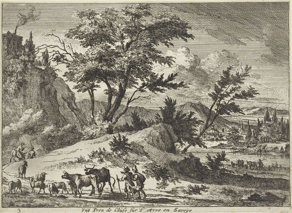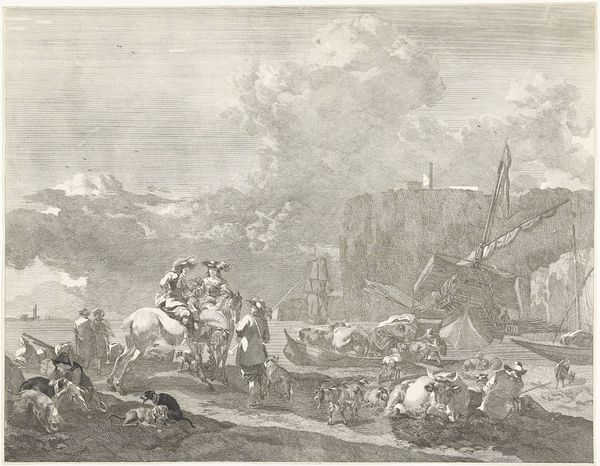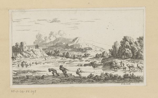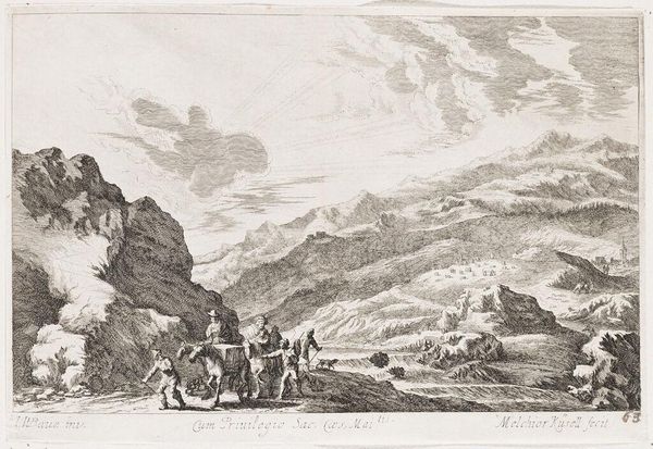 Dancker Danckerts created this Italian mountain landscape with shepherd and shepherdess by a riverbank sometime in the mid-17th century. This idyllic scene offers a glimpse into the romanticized views that Northerners held of Italy. While Danckerts never actually traveled to Italy, he was clearly influenced by artists who had, absorbing a vision of Italy that was less about reality and more about longing. The figures of the shepherd and shepherdess are archetypal, their presence lending a pastoral, almost biblical quality to the scene. Note the woman carrying the heavy load on her head. This engraving reflects the social structures of the time, where labor and gender roles were clearly defined. It offers a softened, picturesque take on the lives of ordinary people, carefully avoiding any depiction of social tension. In this landscape, the human figures are dwarfed by the natural world, suggesting a yearning to return to a simpler, pre-industrial existence. It’s this tension, between the real and the ideal, that makes Danckerts' work so compelling.