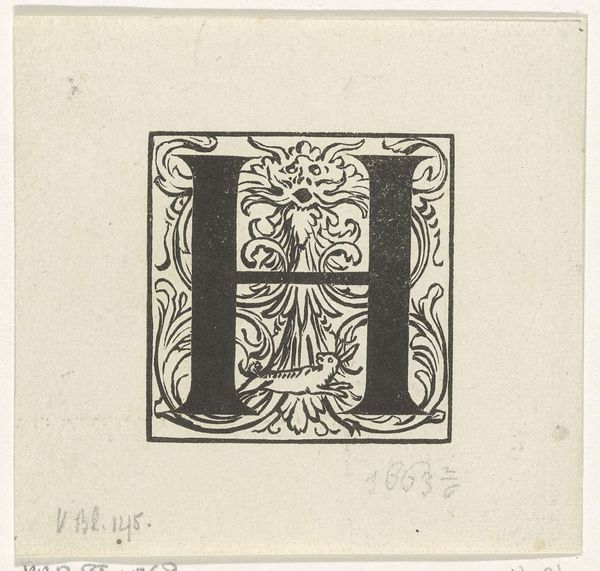 Editor: So, this is "Letter F in een omlijsting met een vogel," a 17th-century piece by an anonymous artist. It's a graphic work using ink, probably a woodcut. The detail is striking, but what immediately grabs me is the integration of the natural world – the bird, the foliage – into the rigid form of the letter. How do you interpret the piece, thinking about its time? Curator: It’s interesting that you point out the merging of nature and the structured form. Consider that, during the 17th century, printing became increasingly democratized. This piece isn't just about conveying information, it’s about crafting a visual identity. These illuminated letters served a crucial social function in establishing status through printing embellishments, something that only wealthy people could afford. Who do you think it would serve in society, what was the role? Editor: Right, it makes sense. The addition of decorative elements transforms the letter from a simple character to something representative of privilege, right? Sort of a demonstration of literacy and wealth intertwined. It could be displayed by individuals for both their enjoyment and as a signal of high social position. Curator: Exactly. And remember, the act of commissioning, designing, and disseminating these images was not neutral. Think of the politics embedded in images of knowledge production. Were you also reflecting upon the context when this was drawn, given there was limited media? Editor: Absolutely! With such limited outlets for visual culture, works like this took on a bigger role in solidifying values, didn’t they? It really drives home the public role art plays in shaping society, especially its class dimensions, back then. Curator: Precisely. Reflecting on the history helps contextualize both the work and its historical cultural values. It makes me consider the value of digital art today! Editor: Agreed! Seeing it through that lens makes it a fascinating blend of art, social commentary, and, well, even a kind of early marketing.