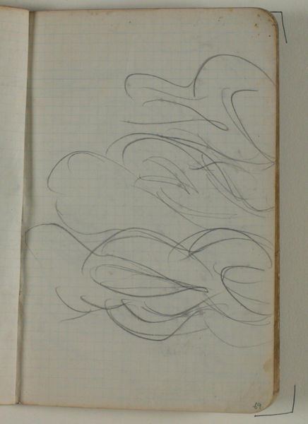 Curator: Here we have "Loose Sketches" by Niels Larsen Stevns, created between 1900 and 1905. It's a drawing in pencil, housed here at the SMK. What strikes you about it initially? Editor: It feels so minimal, almost fragile. Just these few pencil lines on lined paper. I wonder what he was thinking, what his intent was? Was this preparation for a larger piece, or a doodle? Curator: That’s precisely what intrigues me. In terms of labor and material, the deliberate choice of inexpensive materials like pencil and commonplace notebook paper complicates its potential value as an object of high art, versus its value in process, as labor. It almost invites us to see artmaking as a daily practice, available to all, rather than some grand, inaccessible gesture. Editor: Yes! There’s something inherently democratic about using these everyday materials. Perhaps Stevns aimed to democratize art by displaying sketches done with tools accessible to all members of society. From a materialist perspective, the lines created by the artist’s pencil suggest freedom because any observer with a writing utensil is granted this capability of creating, rather than being limited to an exclusive realm of talented trained professionals. But let's think about what "abstraction" might have meant to him and his contemporaries, and its relationship to identity in the period. How did artists of his generation see abstraction fitting into larger cultural narratives, questions of nationalism, and gender? Curator: Exactly! It disrupts that patriarchal narrative of art as the unique province of the skilled (usually male) master, positioning art-making more horizontally, where anyone can experiment, regardless of gender, race, or formal training. The absence of identifiable forms also invites an exploration of the subjective experience—art becomes about feeling, intuition, about transcending representational limitations in an era defined by change. Editor: And from the look of it, these simple, unrefined lines almost look like industrial tool paths and architectural drawings of contemporary facilities rather than representational objects. Do you suppose that society had to transition and redefine what should and should not be art to accommodate this abstract, minimalist take? Curator: Definitely, this pushes viewers beyond conventional interpretation, challenging power dynamics ingrained in how we value certain styles. "Loose Sketches," in all its understated presence, opens space to reconsider art history with a decidedly contemporary lens. Editor: Yes, viewing these lines not just as a means, but an end, gives more prominence and focus on the means of art creation. The piece inspires observers to embrace their inner freedom and creativity by allowing them to associate their personal impressions on it.