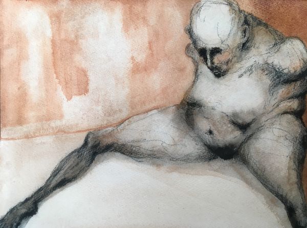 Thiago Boecan made this work on paper, Self Communion, with graphite and watercolor. The artist uses simple materials to create a complex image that has a strong sense of weight and volume. The texture of the paper is visible beneath the washes of color and the scumbled graphite lines. The application is loose and gestural, and we can clearly see the movement of the artist’s hand. Boecan seems interested in exploring the potential of humble materials. Graphite and watercolor are widely available, and the techniques used in the drawing are straightforward. This is not to say that the work is unskilled. On the contrary, it is a demonstration of how much can be achieved with a minimum of means. Ultimately, this work invites us to consider the labor involved in artmaking, and the ways in which artists can transform everyday materials into something beautiful and meaningful. It blurs the boundaries between fine art and craft.