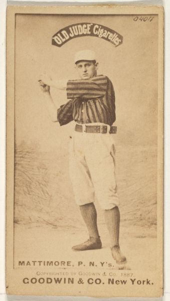 In this 1887 photograph by Goodwin & Company, we see Bill Collins, a baseball catcher, poised with gloved hands raised, eyes fixed on the descending ball. This gesture of anticipation is a powerful symbol, echoing images of supplication and divine reception found across cultures. Consider the ancient orant figures, arms uplifted in prayer, or the classical depictions of Perseus receiving the Gorgon's head— a similar pose conveying readiness and a pivotal moment of action. In Collins' stance, we witness a secular echo of these ancient motifs. The emotional intensity of the game is palpable; Collins embodies a mixture of hope, focus, and vulnerability. The collective memory of such images resonates, engaging viewers on a subconscious level. The catcher's ready hands are not just a practical stance but a symbolic connection, reaching back through time, resurfacing in new contexts, and evolving with each telling.