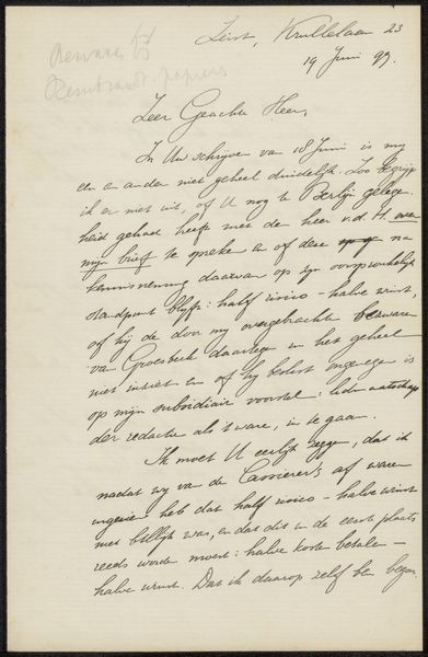 This letter, penned by Chap van Deventer in 1897, offers a glimpse into the world of correspondence before mass communication. It is made with paper and ink, humble materials elevated through the act of writing. Consider the qualities of the paper: its texture, the way it absorbs ink, and the grid lines that guide the writer's hand. Notice the ink, its color and flow, as it forms words and conveys thoughts. The act of writing is itself a craft, requiring skill and precision. Think about the social context of this letter, a time when handwritten communication was essential. Letters were not just carriers of information but also tangible connections between people. This particular one demonstrates labor, politics, and consumption, encapsulating the amount of work involved in the production process, and is more than just ink on paper; it's a physical manifestation of thought, connection, and the art of communication.