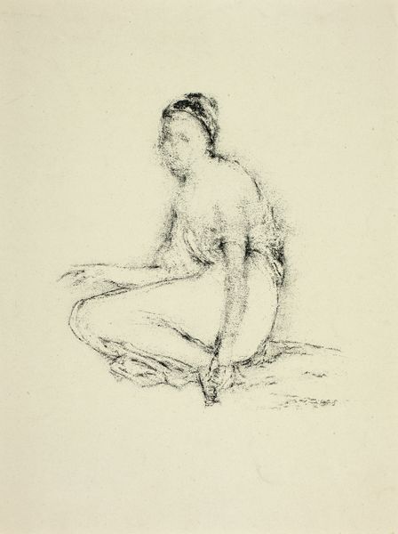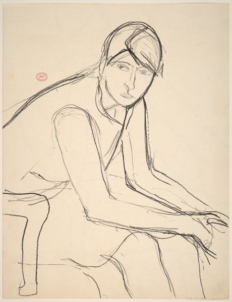 Curator: Eugene Speicher's pencil drawing, "Woman Leaning on a Table," created in 1931, immediately evokes for me a mood of introspective stillness. What impressions does it spark in you? Editor: You know, there's a vulnerability in her repose—the way she's leaning, almost collapsed, yet those eyes are so alert. She feels incredibly present, like she's choosing to reveal a fleeting moment of pensive thought. Curator: It is fascinating how Speicher captures the complexity of inner life through such a simple medium. The leaning posture itself could signify any range of emotions, but there's something familiar in the downcast eyes. It reminds us of universal experiences like fatigue, waiting, or simply reflecting on life. Editor: The almost hazy use of the pencil really amplifies that sense of intimacy too, right? Like we're viewing a half-formed dream, or memory starting to solidify in our minds. I imagine her after some revelation...or maybe simply after having said what needed to be said at the perfect moment. Curator: Speicher often depicted his subjects with a gentle sense of empathy. If you consider that throughout history a "reclining" woman suggests power and wealth or seductive beauty, Speicher is doing the reverse. This modern woman presents not to be looked at but to reveal private psychological experience. Editor: Yes, she isn't overtly performing womanhood, but rather, claiming an honest expression in her personal space and that shifts so much in its reading. It's a portrait about authentic expression over artificial pretense and in that regard still feels completely revolutionary today. Curator: It certainly does! It's that subtle depth of emotion captured within the seemingly simple lines of this drawing that keeps me returning to it again and again. Editor: Absolutely. I think its emotional rawness gets under my skin in ways more stylized paintings cannot touch. There's a magic trick here; one simple artwork reveals a mirror held up to all.