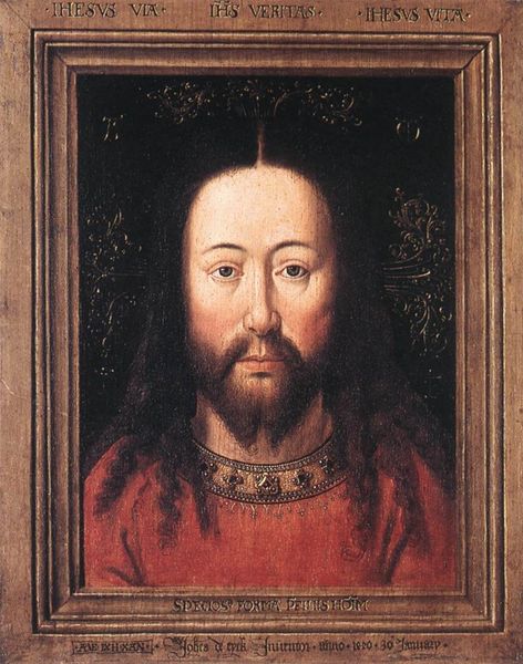 Dirk Bouts painted this Head of Christ, with oil on panel. Bouts worked in the Netherlands in the 15th century when the region was undergoing significant social, religious, and artistic change. Representations of Christ like this one were rooted in complex theological debates about his dual nature as both divine and human. How do you capture the essence of both in a single image? Consider the emotional weight carried by this image, created at a time when Christian beliefs deeply impacted everyday life. Bouts was known for his calm, dignified figures, which depart from earlier, more theatrical depictions of religious figures. Look closely at the face: the artist’s focus on a serene, almost melancholic expression invites a personal, introspective connection with the divine. The subtle details, like the soft rendering of his hair and beard, contrast with the rich, decorative collar and robes, bridging the earthly and spiritual realms. This piece invites us to meditate on the nature of faith, humanity, and the powerful role that images play in shaping our beliefs and emotional experiences.