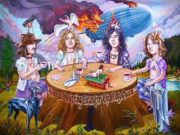 Dave Macdowell made "When Yoko Ate Ringo" in the 20th century. The painting is a complex web of references to the Beatles’ late 1960s output and the band’s subsequent break up. The psychedelic imagery, recalling the Sgt. Pepper era, coexists with a sinister scene of Yoko Ono depicted as a monstrous tree, devouring Ringo Starr. The other band members look on, seemingly powerless. The painting may be interpreted as a comment on the pervasive narrative, circulated in the popular press, that Yoko Ono was responsible for the Beatles’ demise. The painting prompts us to consider the social conditions that shaped these images. What anxieties were projected onto Yoko Ono, and why? What role did misogyny and racism play in the construction of this narrative? By examining popular publications from the period, such as newspapers, fan magazines, and biographies, we can begin to understand the cultural forces that influenced Macdowell’s painting and the ways in which it reflects the social norms of its time.