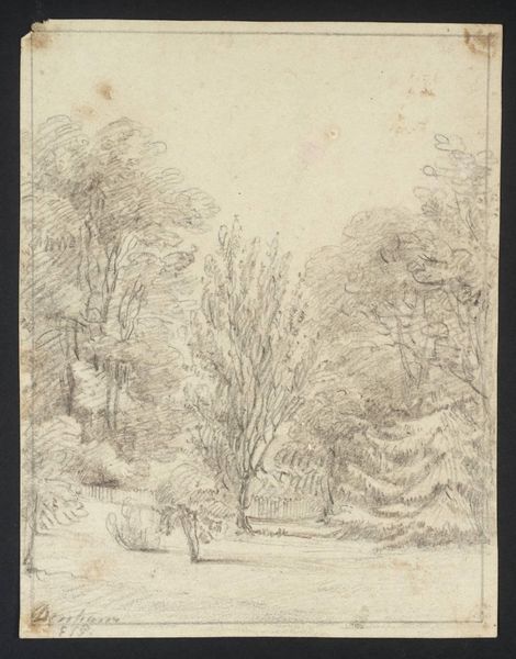 Johannes Tavenraat created 'Bomen bij Overmaas' using pencil on paper, a traditional choice for landscape studies. The use of pencil allows for a range of tonal values, from light, airy strokes suggesting foliage to darker, denser marks defining the tree trunks. This reflects a direct engagement with the qualities of the material – its ability to capture subtle variations in light and texture. Tavenraat’s technique involves layering and hatching, building up the composition through meticulous observation. This labor-intensive process results in a rich surface, even within the limited palette. While seemingly straightforward, the pencil’s role as a readily available and affordable medium ties into broader social issues. It democratized artistic practice, allowing artists to capture their surroundings without the need for elaborate materials. By emphasizing the importance of material and process, we gain a deeper understanding of the work’s meaning, and the relationship between art, labor, and everyday life.